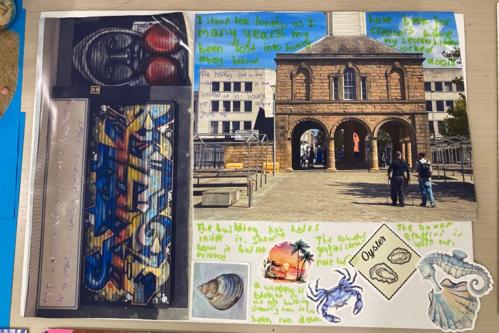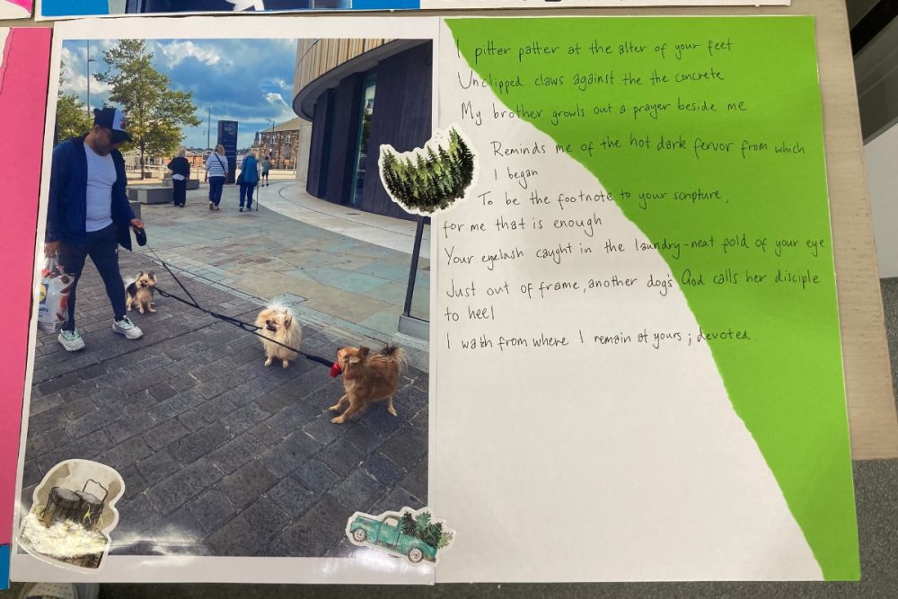 Snapshots of Summer was a poetry, collage and zine-making workshop led by poet Jasmine Plumpton, with support from Rue Collinge at The Word in South Shields. It was a fittingly dreamy three days reflecting on summers past and present and imaging future ones. The young people went out and about in South Shields taking photos of things and observing to inspire their creations. They combined their writing, poetry, and photography into collages to produce zines, and giant and mini postcards.