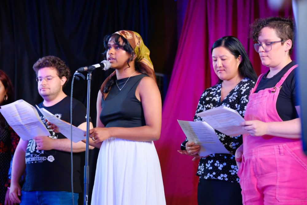 This summer, Voice Notes came to life on stage as part of the PRS New Music Biennial. In collaboration with New Writing North’s multilingual group, World Writes, the evening wove together powerful performances, readings by World Writes writers alongside immersive sound artwork by Hardi Kurda, built from voice messages shared by refugees and migrants around the world.